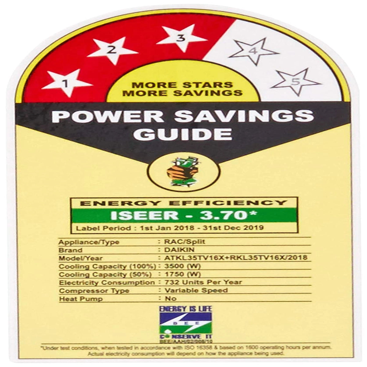 Daikin 1 Ton 3 Star Inverter Split AC (Copper, ATKL35TV16, White)