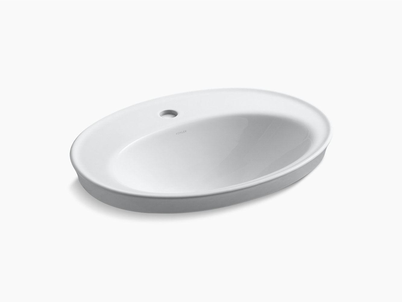 कोहलर K-2075IN-1-0 536mm x 414mm सेल्फ-रिमिंग बेसिन सिंगल नल छेद के साथ सफ़ेद रंग में