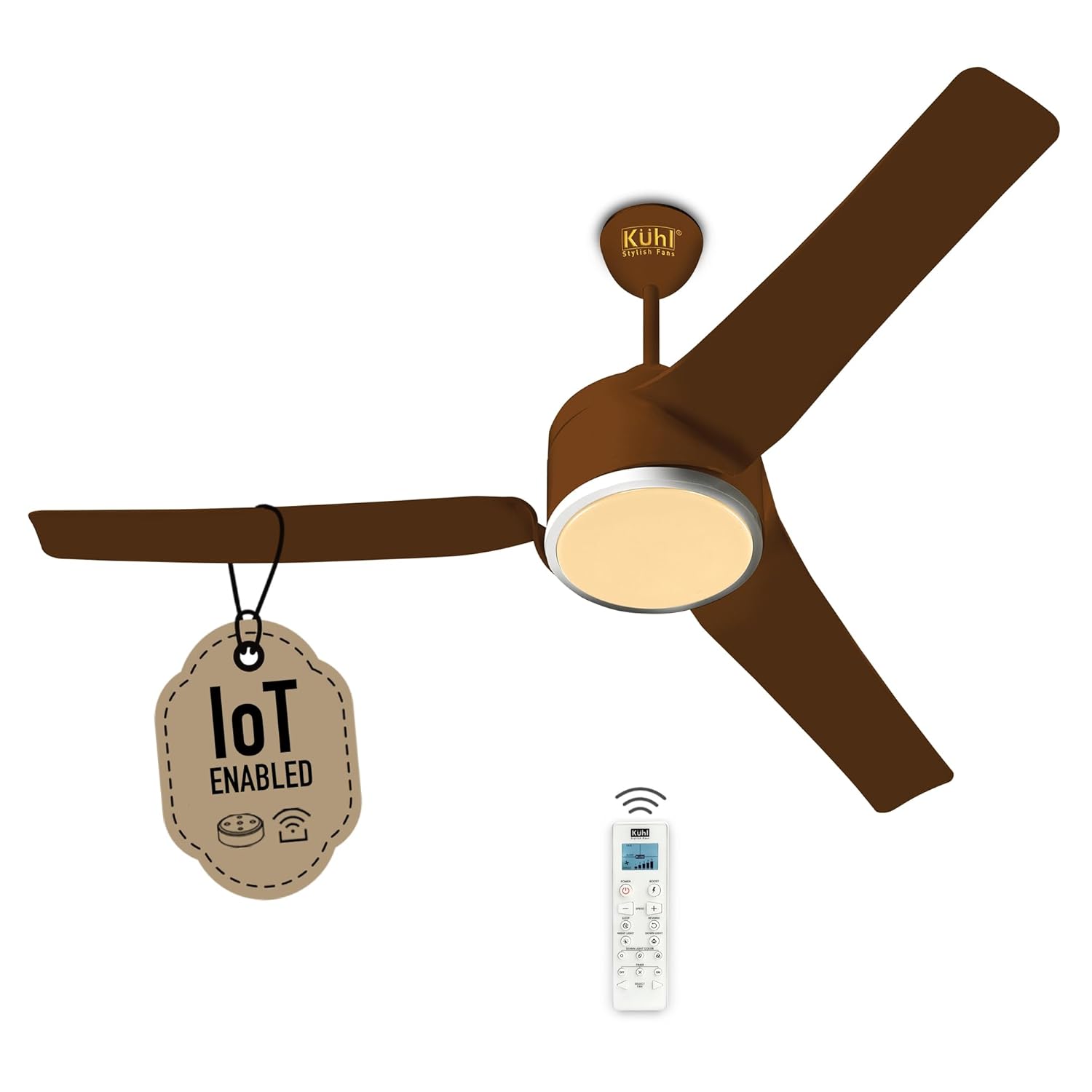 KUHL Ritzz R3 1320mm BLDC Ceiling Fan - 65% Power Saving, BEE 5 Star & ISI Marked, High Air Flow, IoT & Alexa Compatible - Brown