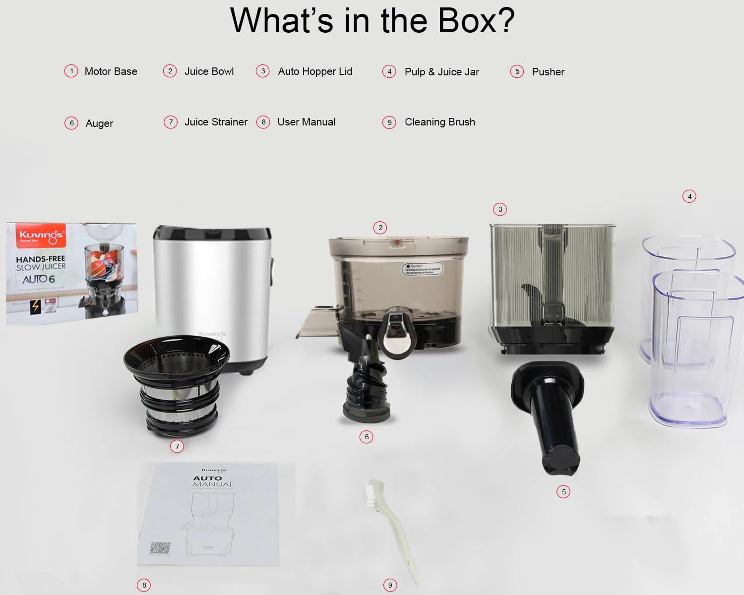 kuvings Kuvings AUTO6 Silver Hands-Free Cold Press Whole Slow Juicer, Automatic Fruit Cutting Technology, Patented JMCS Technology, 12Yr Motor Warranty, All-in-1 Fruit & Vegetable Juicer, 200 Watts
