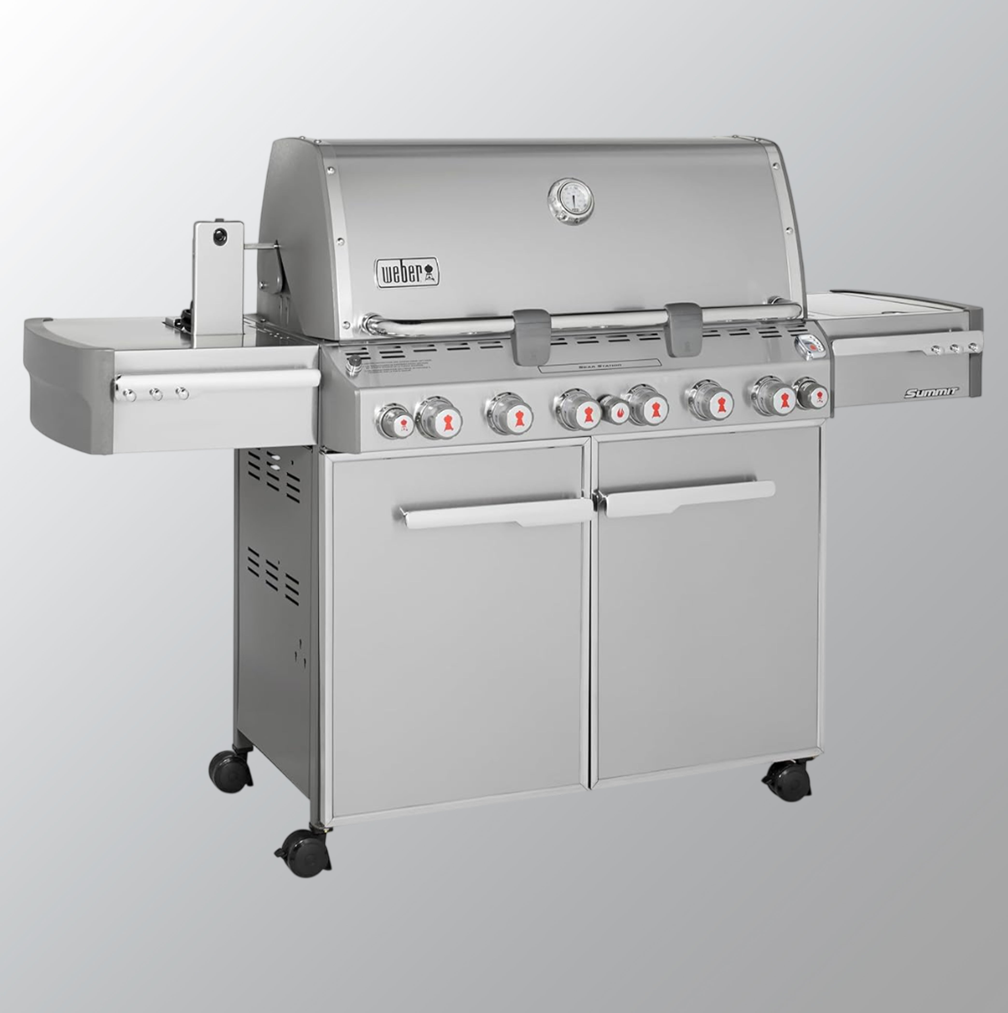 वेबर समिट 7370001 S-670 स्टेनलेस-स्टील 769-स्क्वायर-इंच 60,800-BTU लिक्विड-प्रोपेन गैस ग्रिल