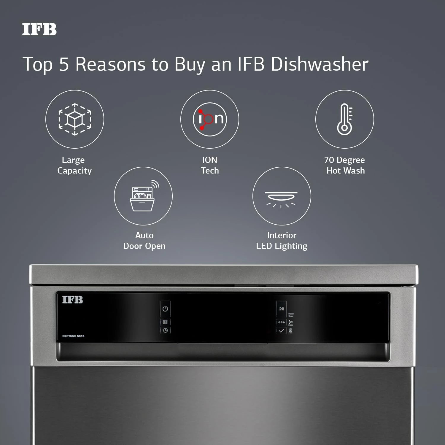 IFB 16 Place Settings with DeepClean® Technology Powered by AI Freestanding Dishwasher (Neptune SX16, Pearl Grey, Auto Door Open for Effective Drying, Interior LED Lighting)