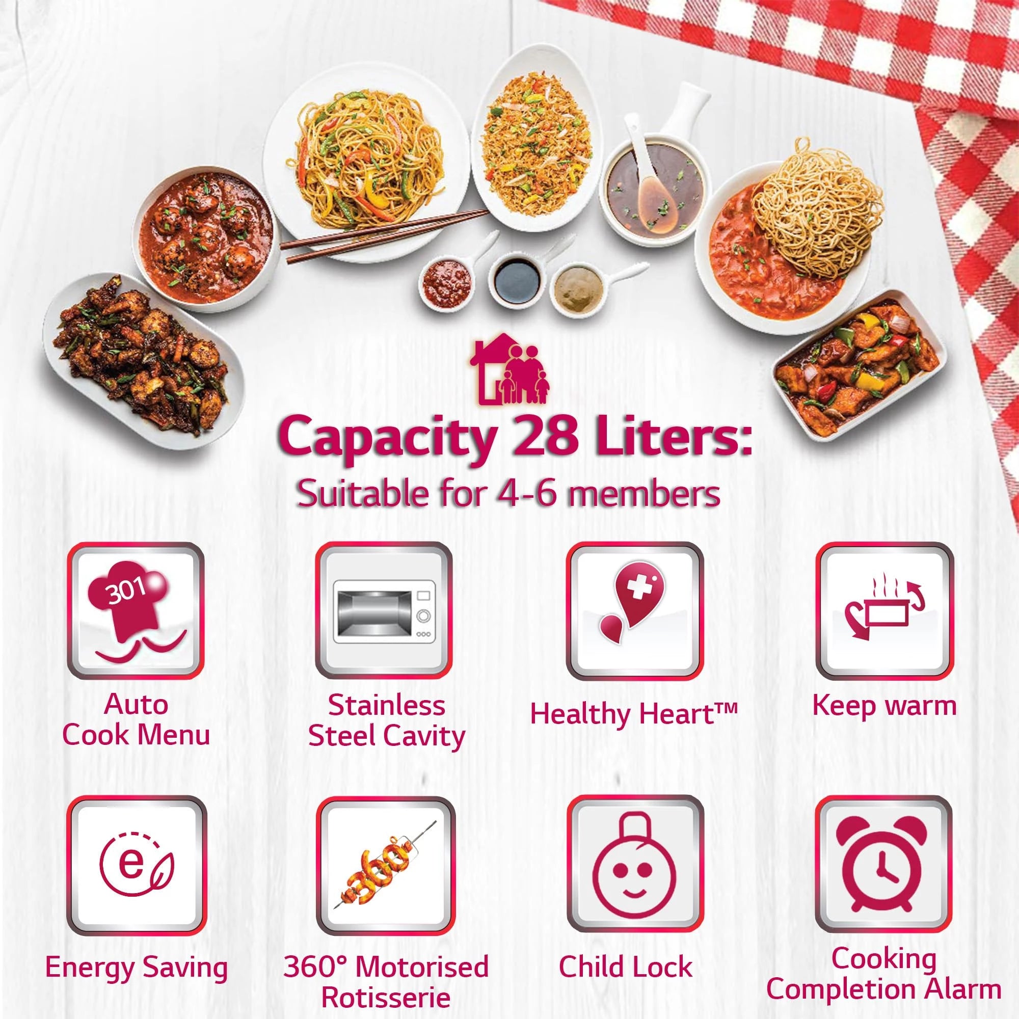 LG 28 L Charcoal Healthy Microwave Conventional Oven (MJ2887BWUM, Black, 360° Motorised Rotisserie)