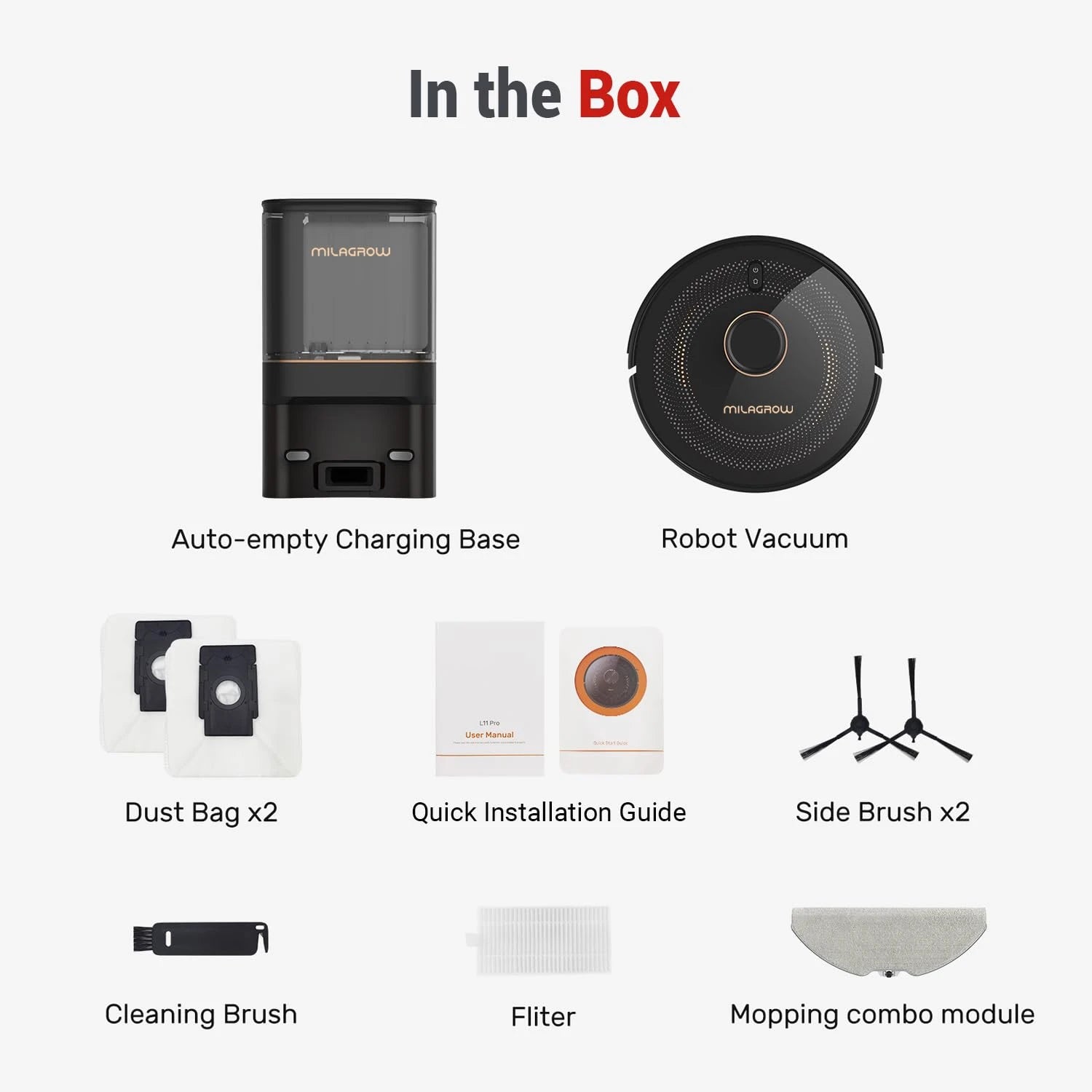 MILAGROW iMap 23 Black Pro Wet & Dry Robot Vacuum Cleaner, 2023 Model,Self-Empty 4L Dustbin Upto 70 Days Hands Free Cleaning,5000Pa Suction,5200 mAh Battery,Covers 4000+ Sq.Ft. Area,LIDAR Navigation