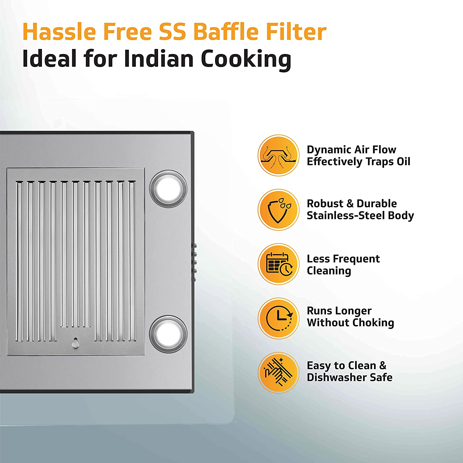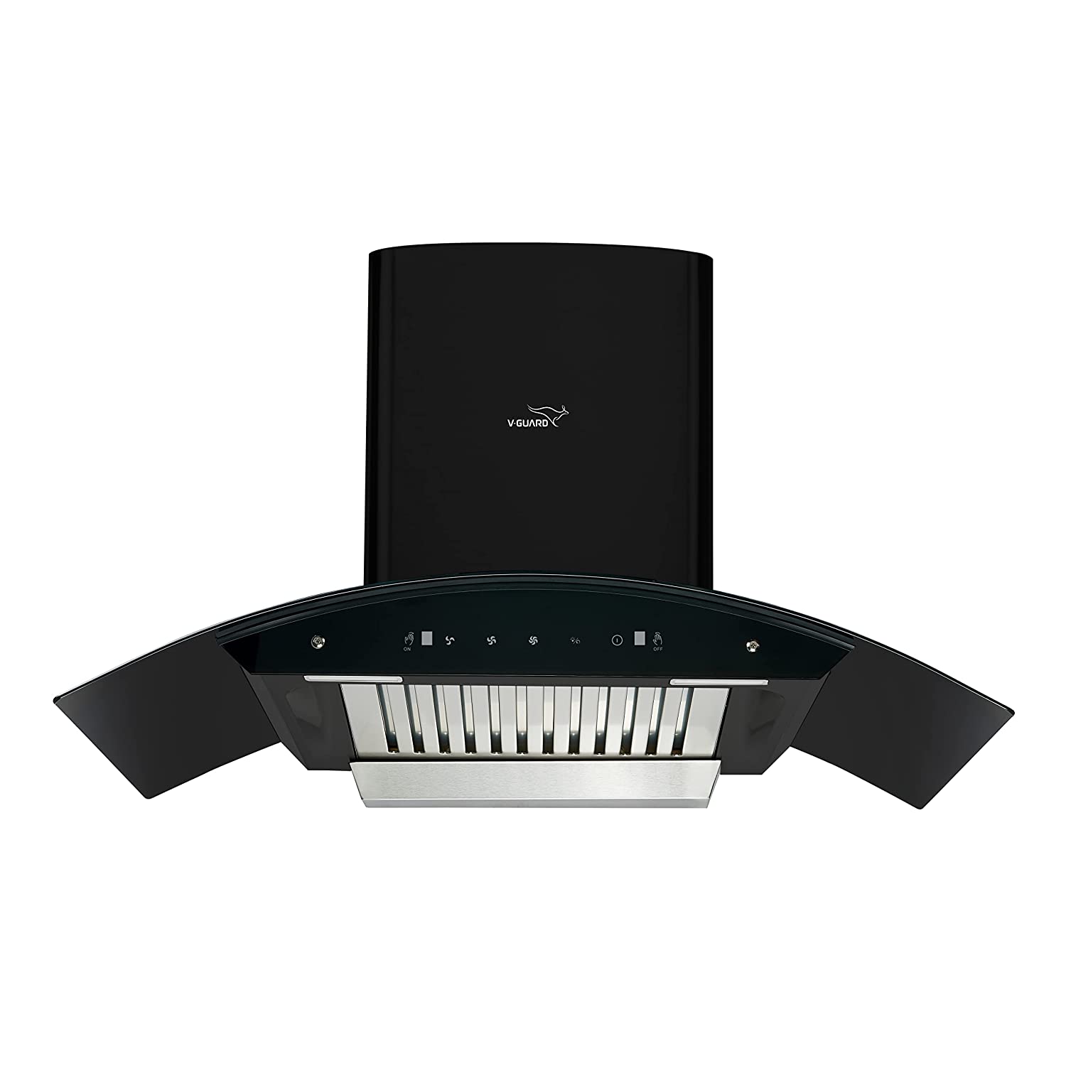 V-Guard A20 BL180 Kitchen Chimney with 1200m³/hr Suction, Intelligent Auto Clean, Curved Glass, Baffle Filter, Motion Sensor Controls, Oil Collector Tray, LED Light (Black)