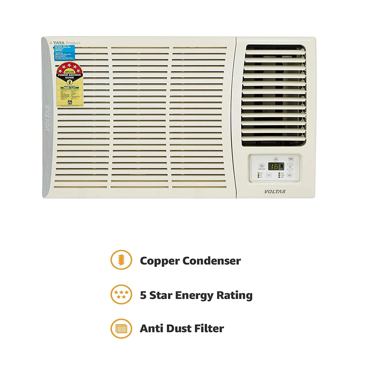 Voltas 1.5 Ton 5 Star Window AC (Copper,185 DZA/185 DZA R32, White)