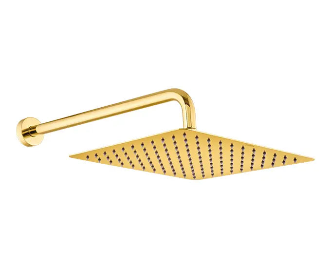Cera F7010214FG லஸ்டர் ஸ்டெயின்லெஸ் ஸ்டீல் ஓவர்ஹெட் ரெயின் ஷவர் 300 x 300 மிமீ (12" x 12") 450 மிமீ (18") ஷவர் ஆர்ம் மற்றும் வால் ஃபிளேன்ஜ் பிரஞ்சு கோல்டு