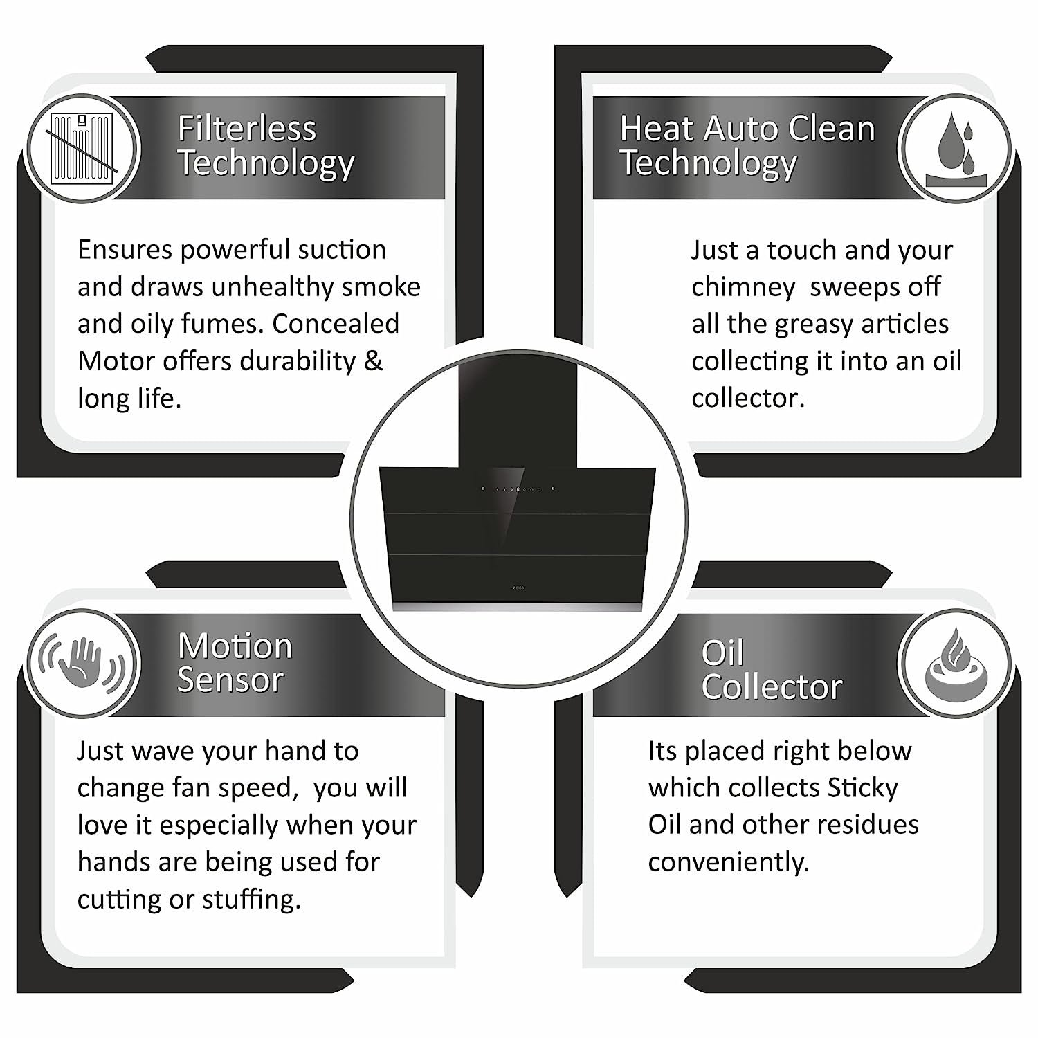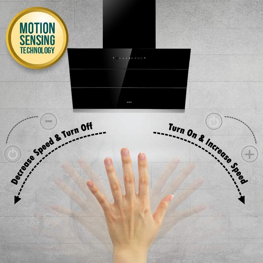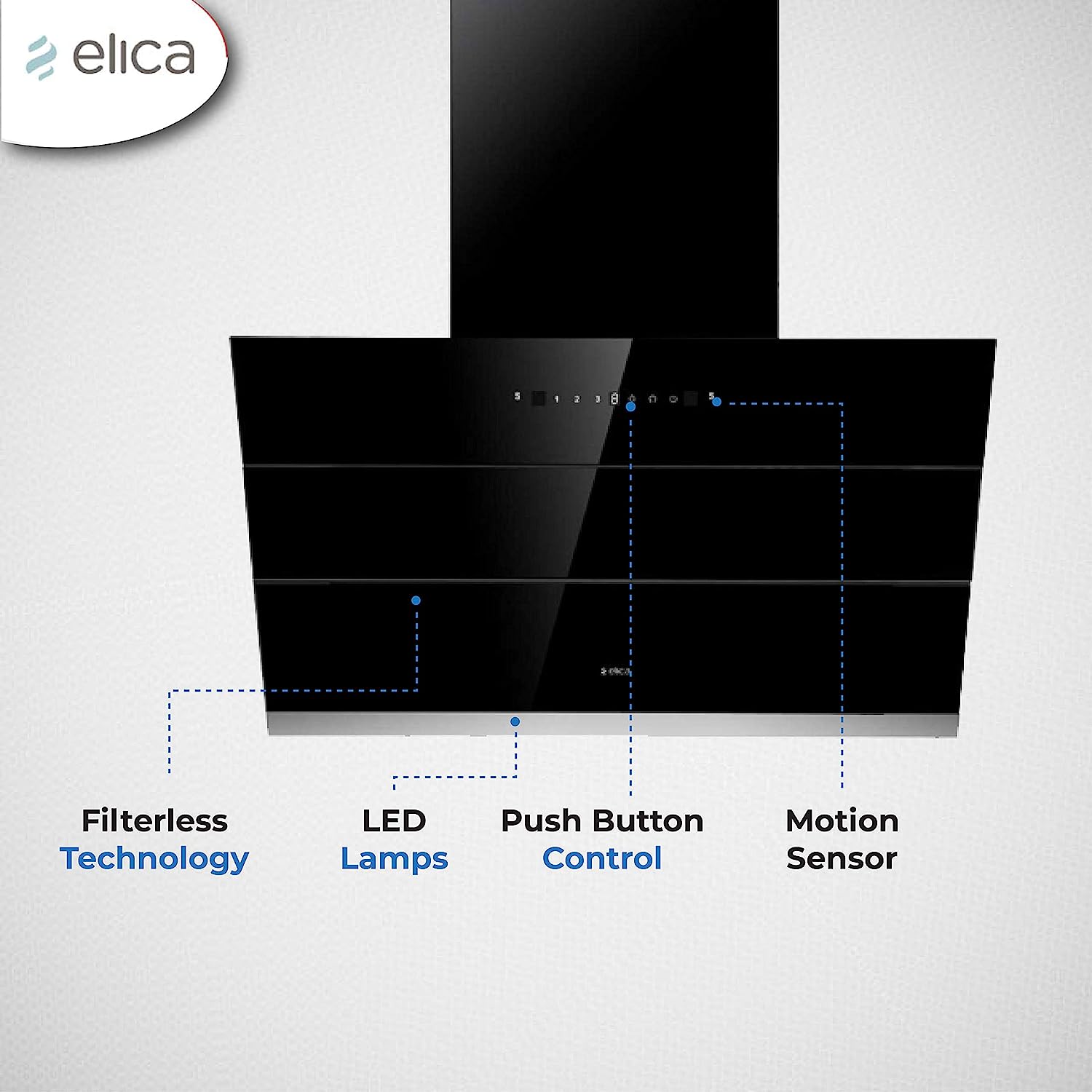 எலிகா 90 செ.மீ 1200 மீ3/மணி ஃபில்டர்லெஸ் ஆட்டோக்ளீன் கிச்சன் சிம்னி 15 வருட உத்தரவாதத்துடன் (EFL-S901 HAC VMS, டச் + மோஷன் சென்சார் கட்டுப்பாடு, கருப்பு)