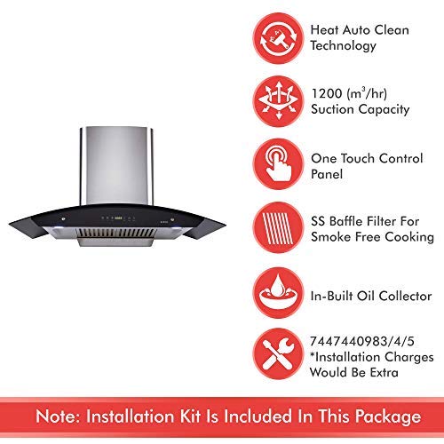 எலிகா 90 செ.மீ 1200 மீ3/மணி ஆட்டோ கிளீன் புகைபோக்கி (WD HAC டச் BF 90 MS பிளாக்)
