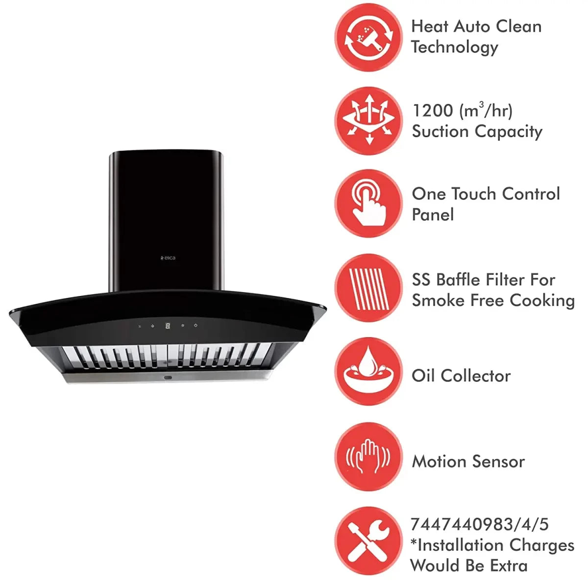எலிகா 90 செ.மீ 1200 மீ3/மணி ஆட்டோ கிளீன் புகைபோக்கி (WDAT HAC 90 MS NERO, டச் + மோஷன் சென்சார் கட்டுப்பாடு, கருப்பு)