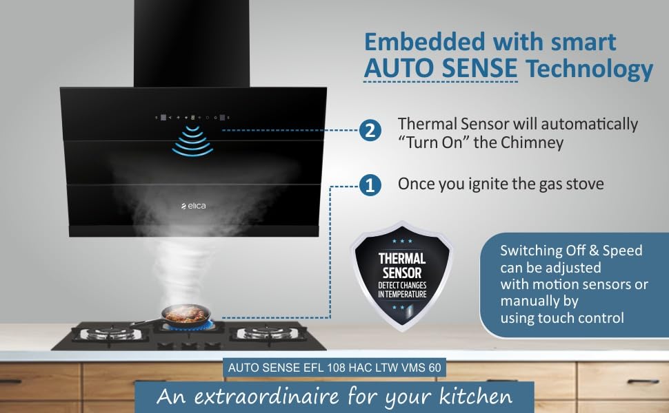 எலிகா 60 செ.மீ 1350 மீ3/மணி வெப்ப சென்சார் வடிகட்டி இல்லாத ஆட்டோக்ளீன் ஆங்குலர் கிச்சன் புகைபோக்கி 15 வருட உத்தரவாதத்துடன் (ஆட்டோ சென்ஸ் EFL 108 HAC LTW VMS 60)
