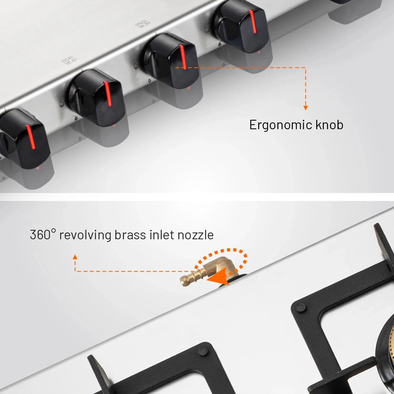 Glen 4 Burner Ultra Tuff Stainless Steel LPG Gas Stove | Silver | Forged Brass Burner | Revolving Inlet Nozzle | 1054 UT SS 73 AI (Auto Ignition)