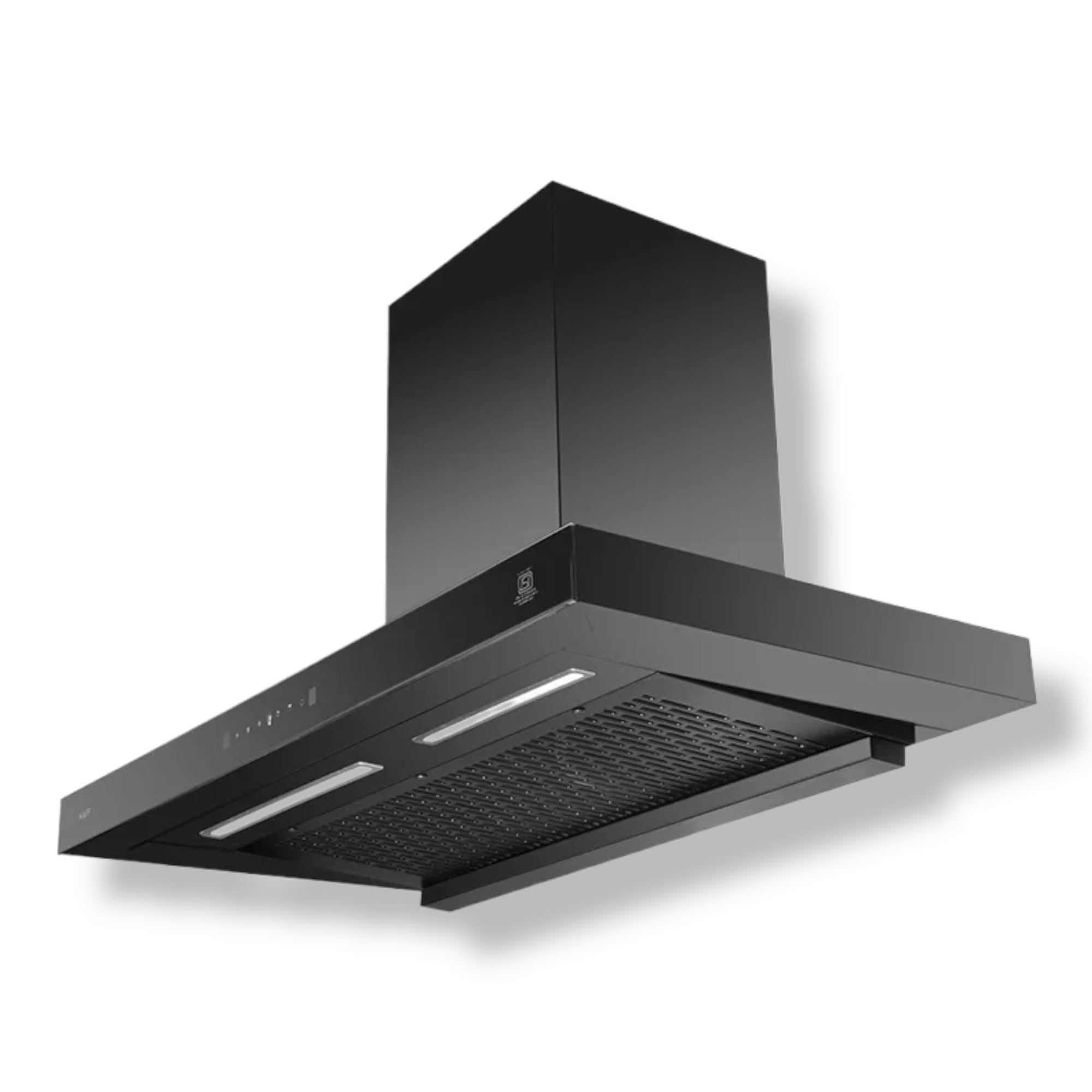 KAFF ASHPRO DHC 90 | வடிகட்டி இல்லாதது | 3 வேக சைகை கட்டுப்பாடு | உறிஞ்சும் 1200 CMH | உலர் வெப்ப தானியங்கி சுத்தம் சுவர் பொருத்தப்பட்ட 90 செ.மீ புகைபோக்கி (கருப்பு)