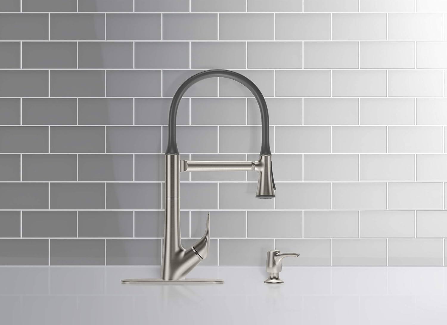 Kohler Arise Articulating Flexible Pull Down Vibrant Stainless Kitchen Faucet with Dock Netik Technology and Sweep Spray (Silver)