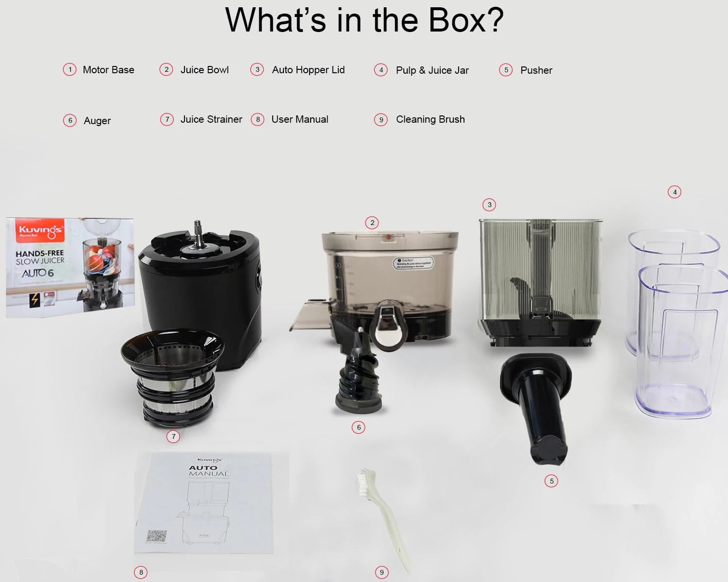 Kuvings AUTO6 Gunmetal Black Hands-Free Cold Press Whole Slow Juicer, Automatic Fruit Cutting Technology, Patented JMCS Technology (10% More Juice), 12Yr Motor Warranty, Best Fruit & Vegetable Juicer