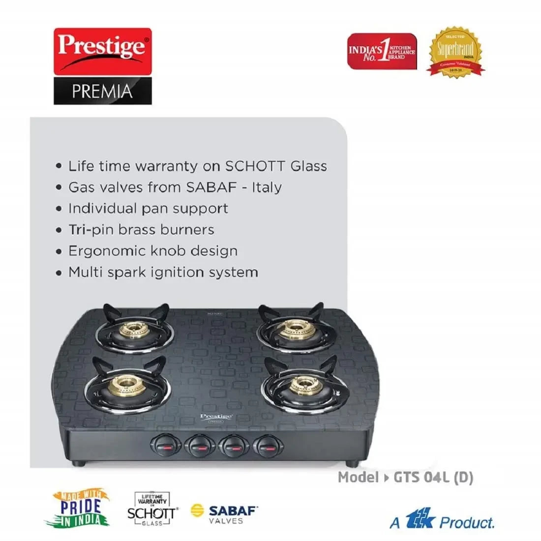 பிரெஸ்டீஜ் பிரீமியா ஜிடிஎஸ் 04 (டி) கிளாஸ் டாப் கேஸ் ஸ்டவ்கள் 40277