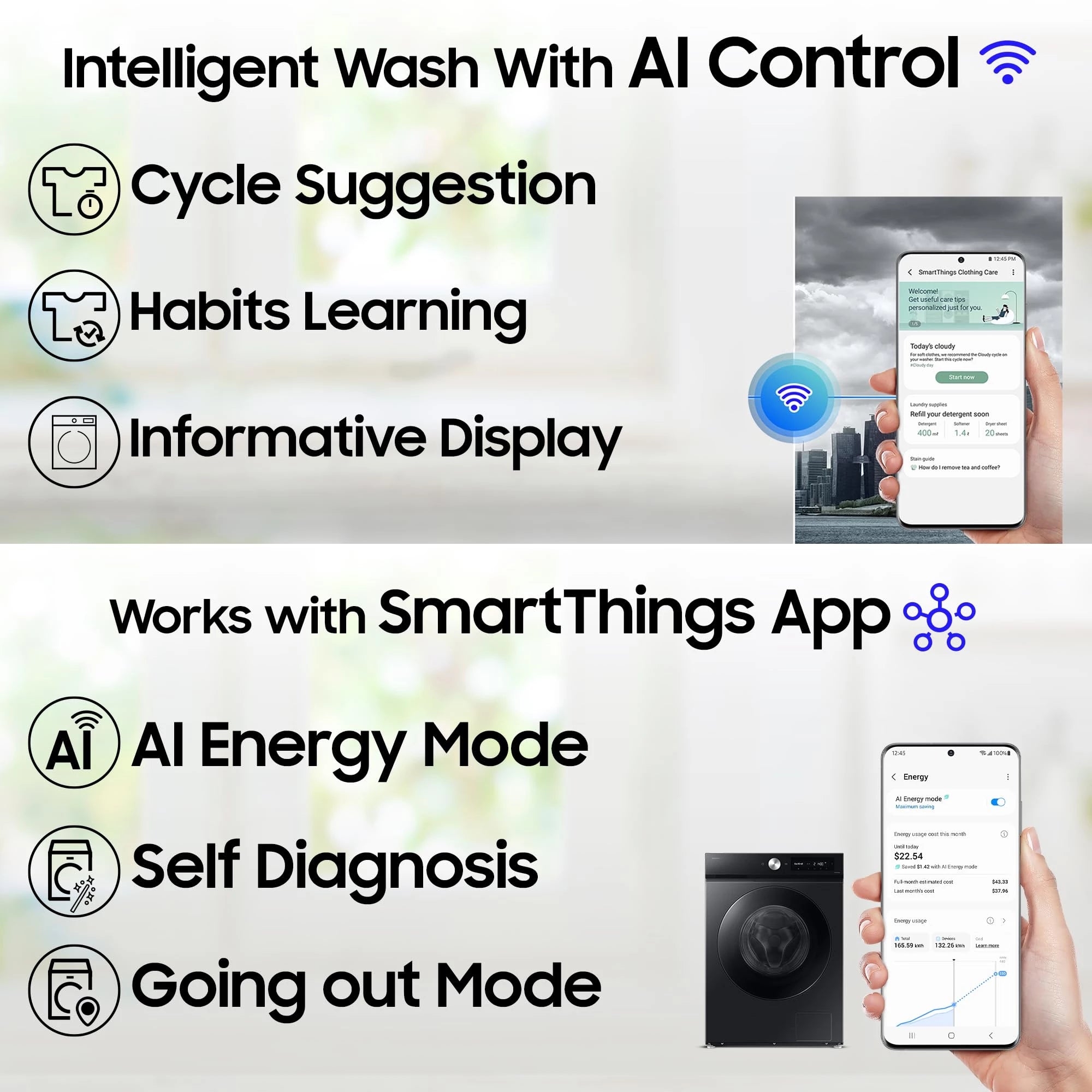 Samsung 12 kg, 5star, AI Control, Super Speed, Wi-Fi, Hygiene Steam with Inbuilt Heater, Digital Inverter, Fully-Automatic Front Load Washing Machine (WW12DG6B24AXTL, Inox)